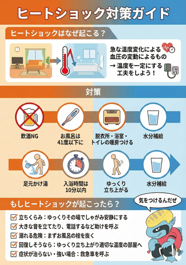 ただ、環境を変えたり工夫することでヒートショックのリスクを減らせるよ。