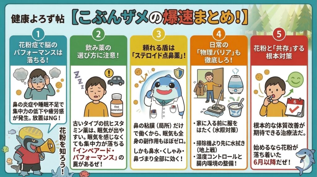 ・(おまけ)長期的には腸内環境を整える(ヨーグルトや食物繊維)ことで、免疫の暴走を抑えるベース作りも大事。
